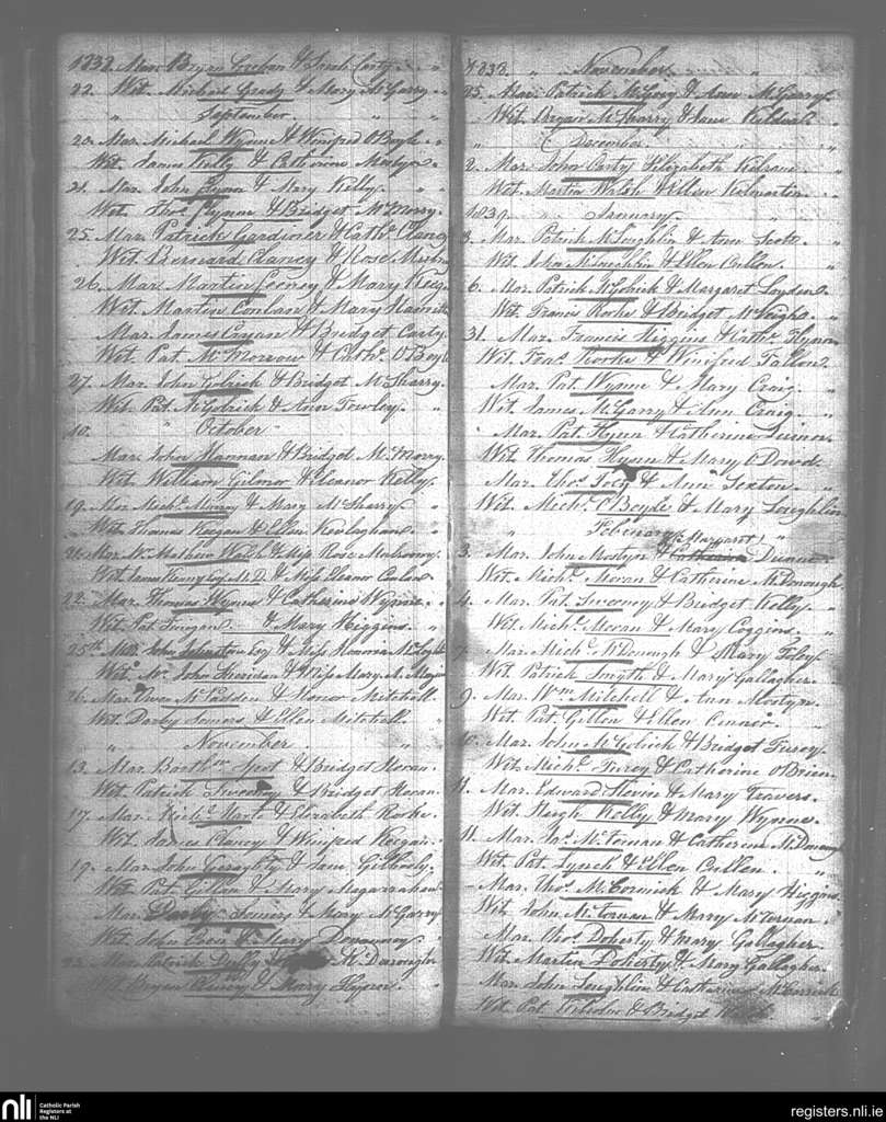 Killenummery; County of Sligo, Leitrim; Diocese of Ardagh. Marriages, July 1838 to Feb. 1839