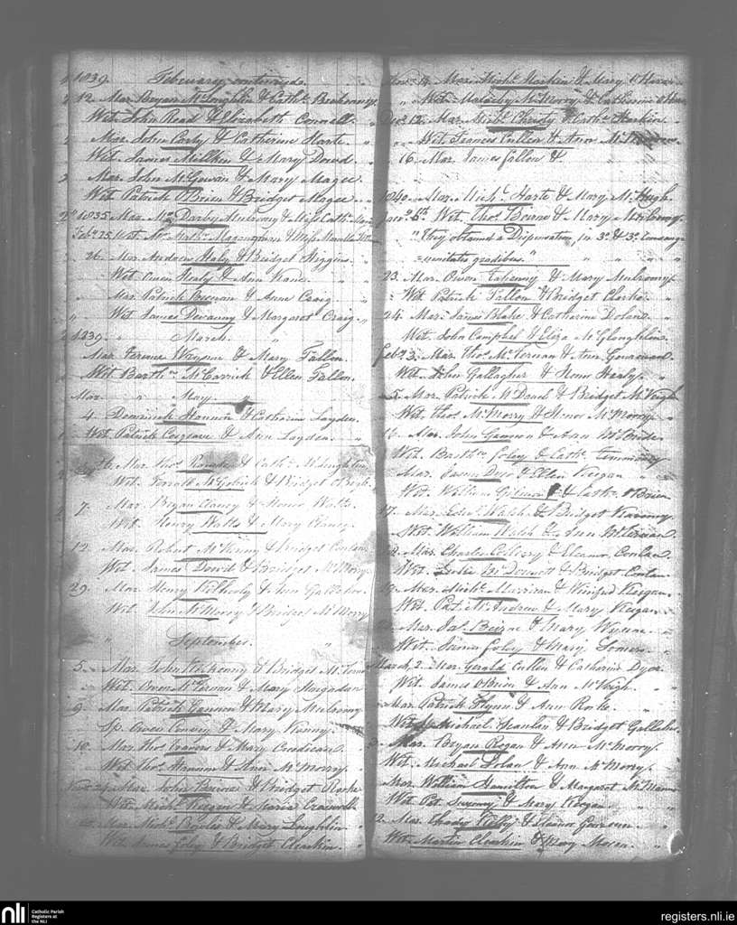 Killenummery; County of Sligo, Leitrim; Diocese of Ardagh. Marriages, Feb. 1835 to Mar. 1840