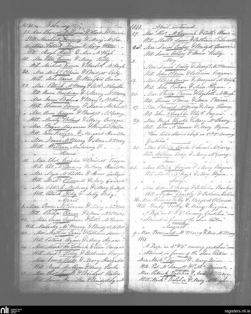 Killenummery; County of Sligo, Leitrim; Diocese of Ardagh. Marriages, Feb. 1841 to Aug. 1841
