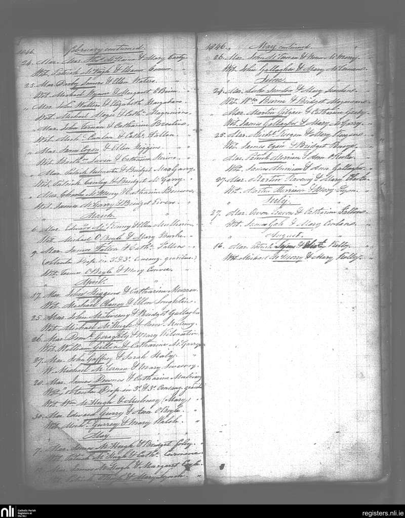 Killenummery; County of Sligo, Leitrim; Diocese of Ardagh. Marriages, Feb. 1846 to Aug. 1846