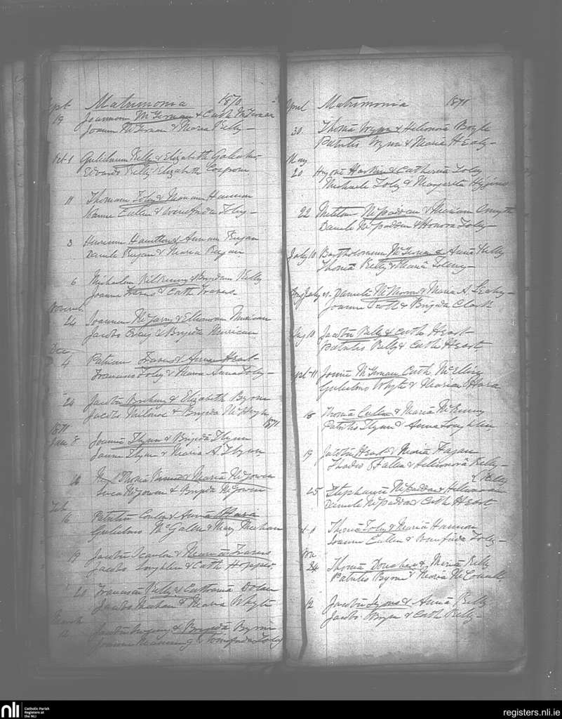 Killenummery; County of Sligo, Leitrim; Diocese of Ardagh. Marriages, Sep. 1870 to Nov. 1871