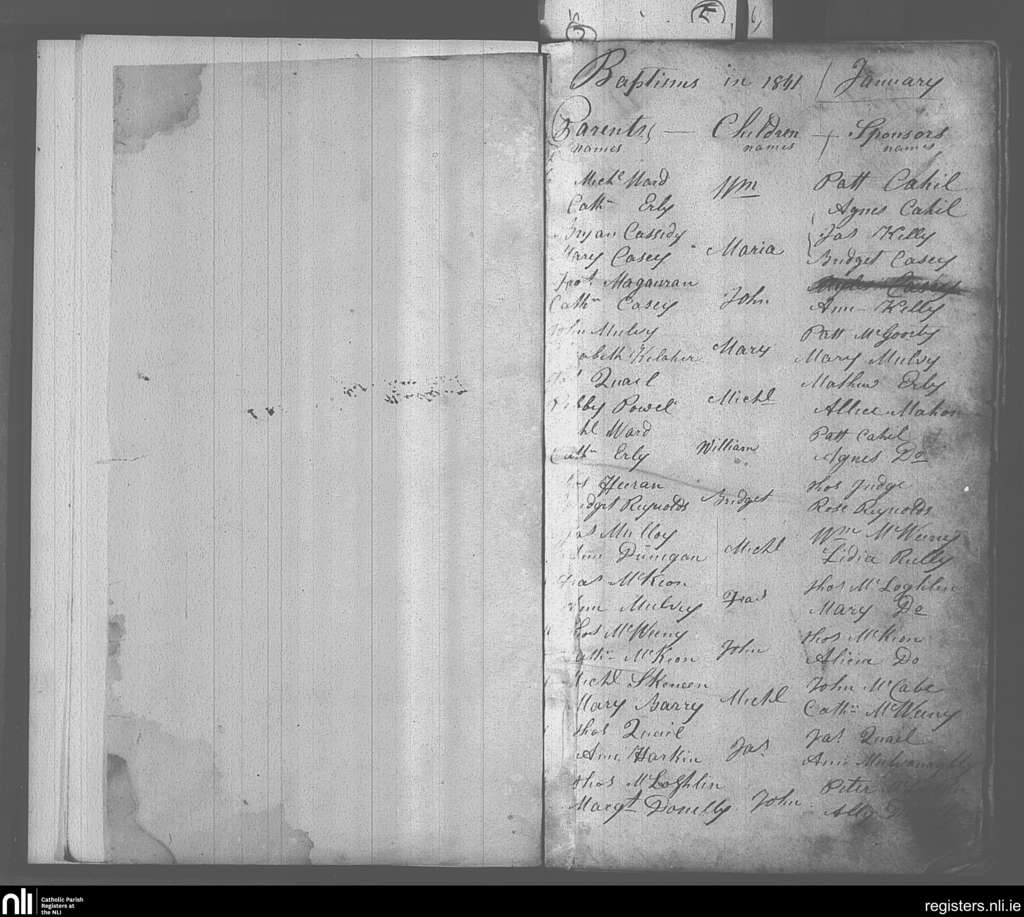Kiltubrid; County of Leitrim; Diocese of Ardagh. Baptisms, Jan. 1841