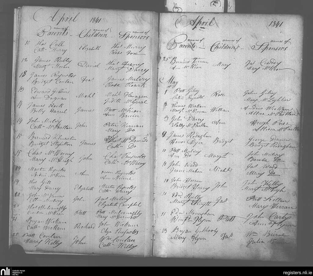 Kiltubrid; County of Leitrim; Diocese of Ardagh. Baptisms, Apr. 1841 to May 1841