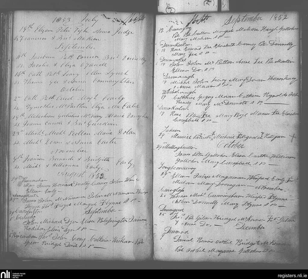 Kiltubrid; County of Leitrim; Diocese of Ardagh. Baptisms, Aug. 1852 to Nov. 1853