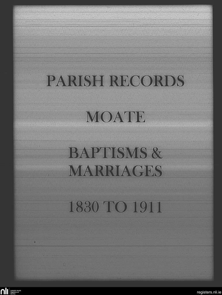 Moate; County of Westmeath, Offaly; Diocese of Ardagh. Baptisms, Marriages