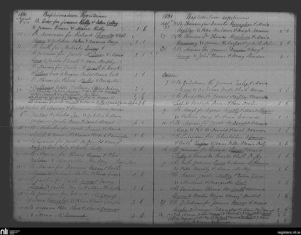 Moate; County of Westmeath, Offaly; Diocese of Ardagh. Baptisms, Aug. 1831 to Oct. 1831