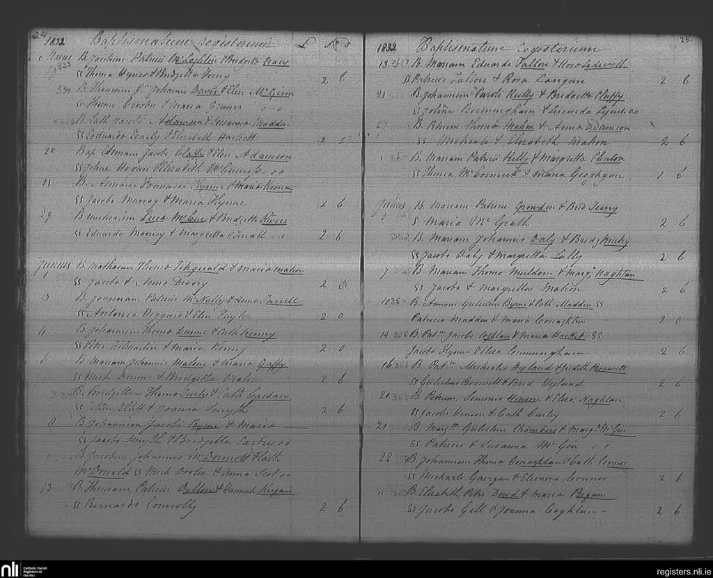 Moate; County of Westmeath, Offaly; Diocese of Ardagh. Baptisms, May 1832 to July 1832