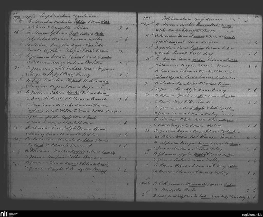 Moate; County of Westmeath, Offaly; Diocese of Ardagh. Baptisms, Sep. 1832 to Nov. 1832