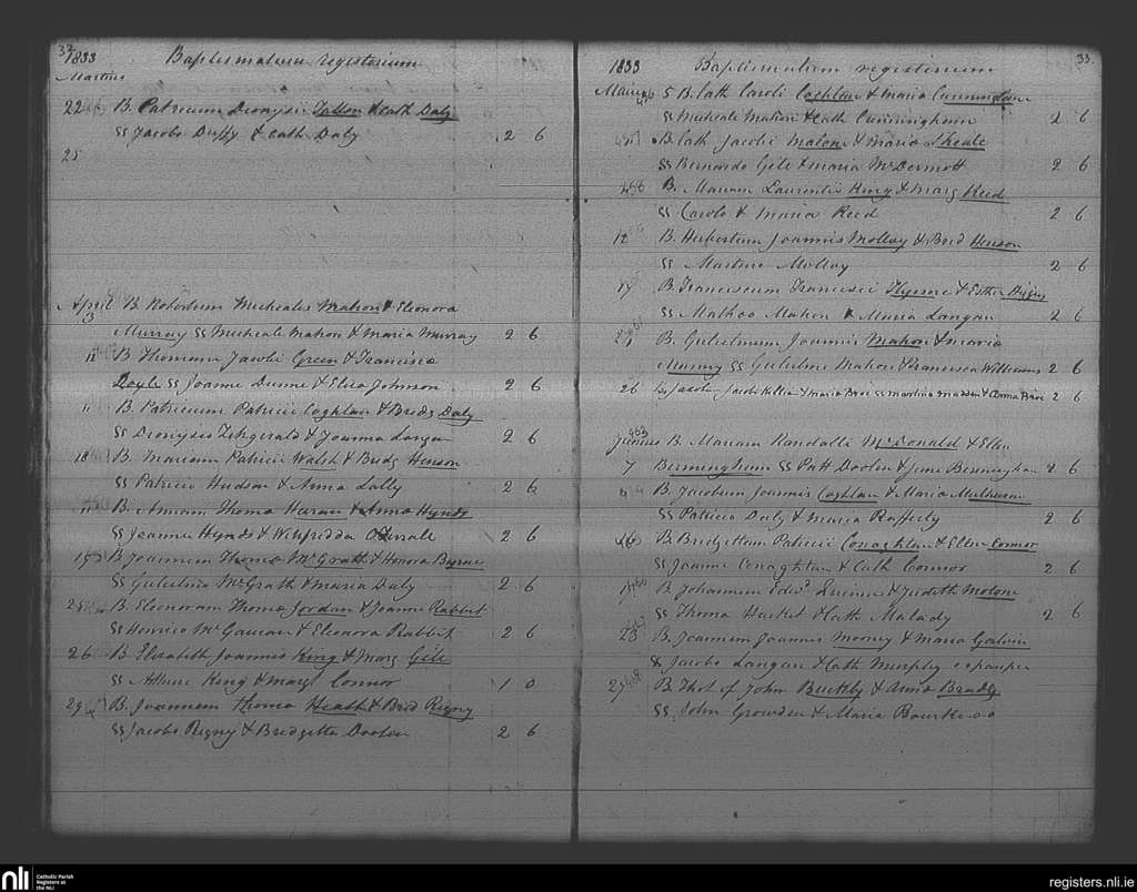 Moate; County of Westmeath, Offaly; Diocese of Ardagh. Baptisms, Mar. 1833 to June 1833