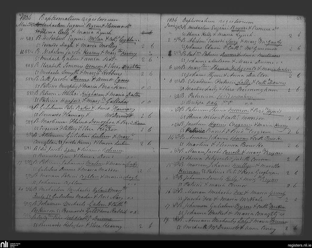 Moate; County of Westmeath, Offaly; Diocese of Ardagh. Baptisms, May 1834 to June 1834