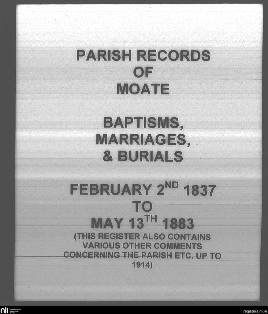 Moate; County of Offaly, Westmeath; Diocese of Ardagh. Baptisms, Marriages, Burials