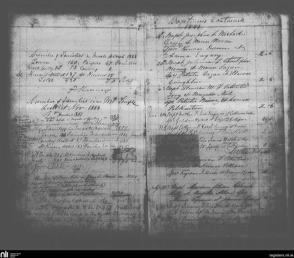 Moate; County of Offaly, Westmeath; Diocese of Ardagh. Baptisms, June 1881 to July 1881