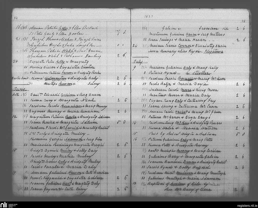Moate; County of Offaly, Westmeath; Diocese of Ardagh. Baptisms, May 1837 to July 1837