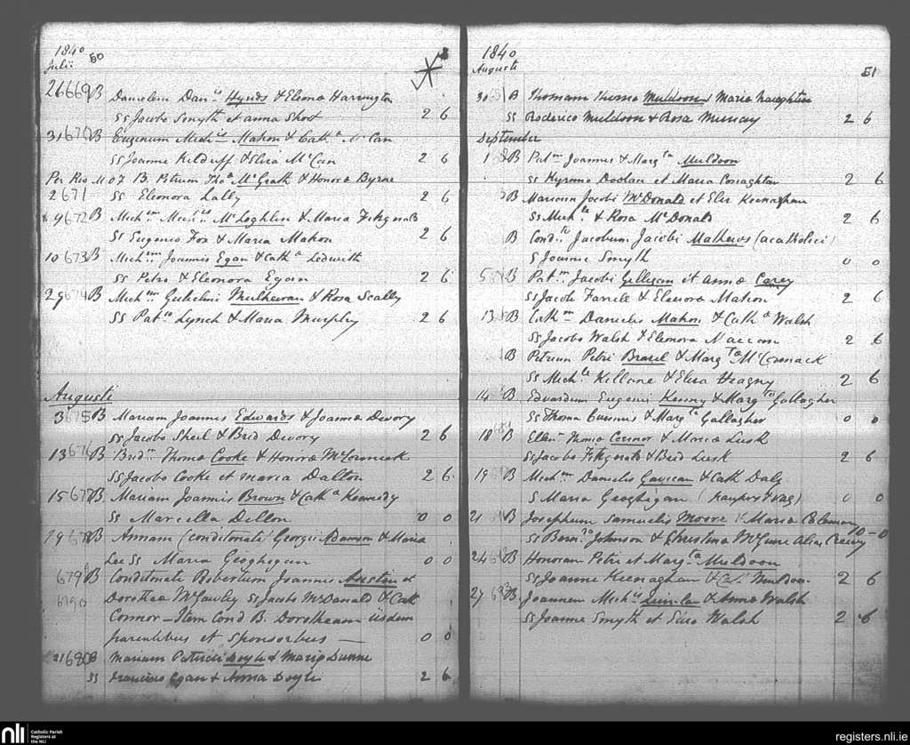 Moate; County of Offaly, Westmeath; Diocese of Ardagh. Baptisms, July 1840 to Sep. 1840