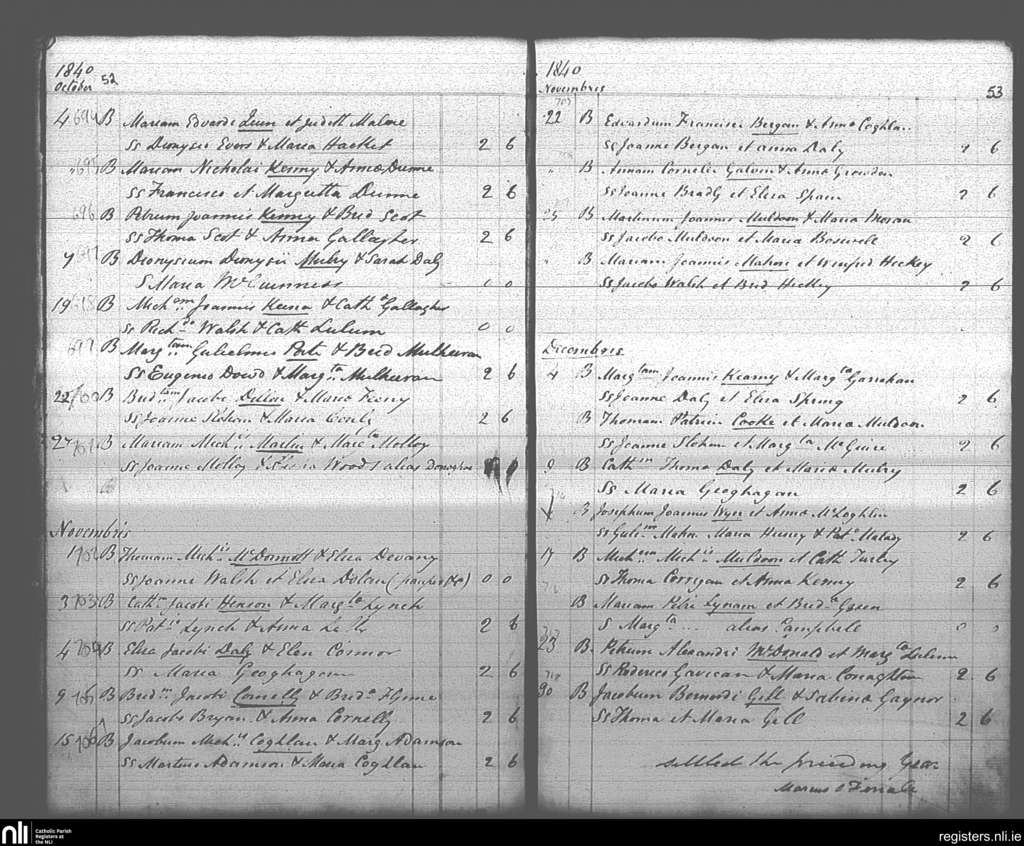Moate; County of Offaly, Westmeath; Diocese of Ardagh. Baptisms, Oct. 1840 to Dec. 1840