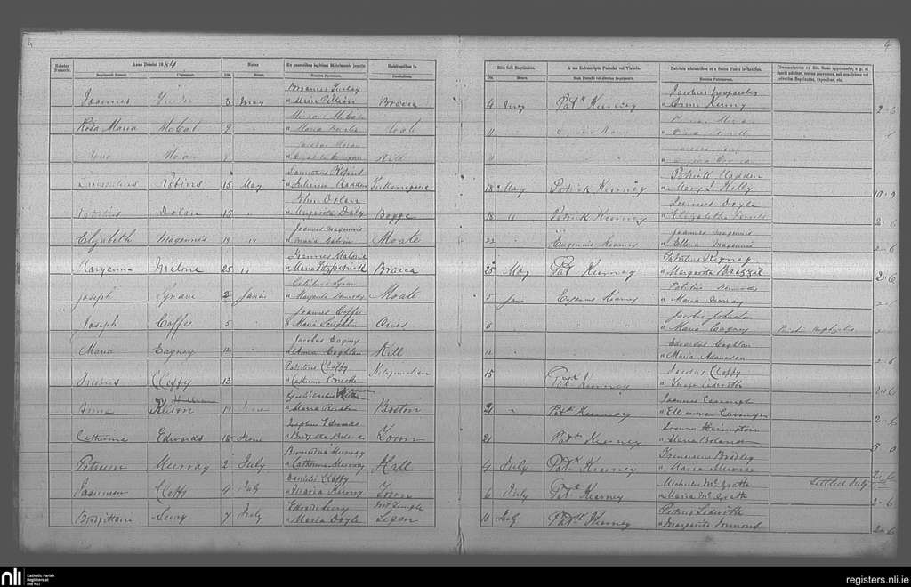 Moate; County of Offaly, Westmeath; Diocese of Ardagh. Baptisms, May 1884 to July 1884