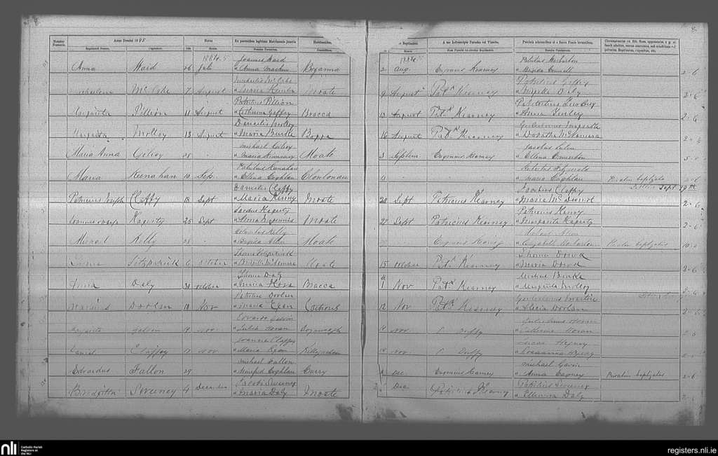 Moate; County of Offaly, Westmeath; Diocese of Ardagh. Baptisms, Aug. 1885 to Dec. 1885