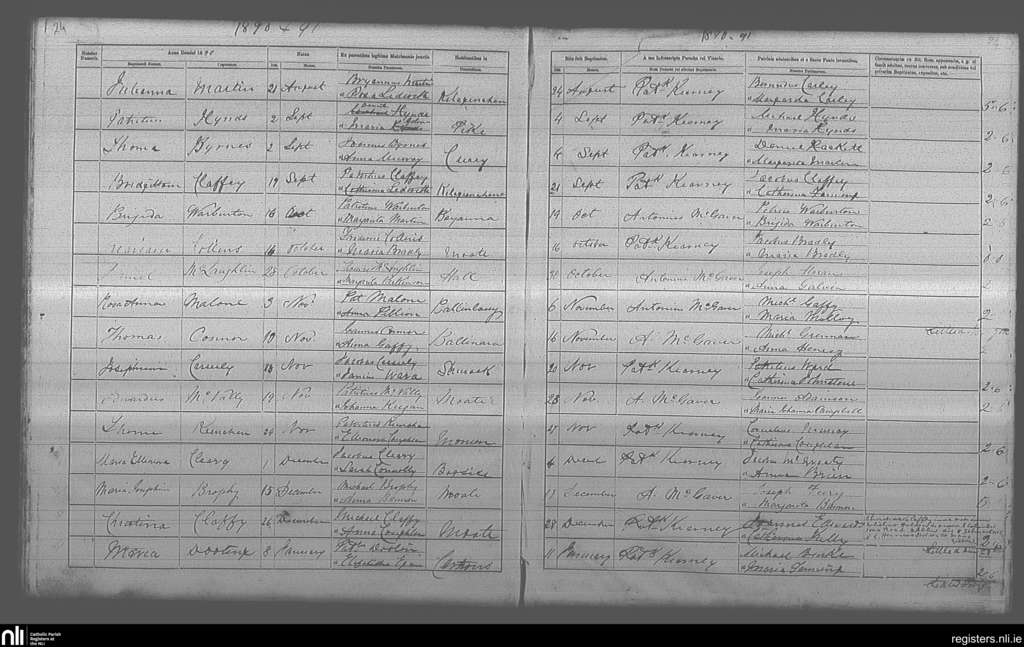Moate; County of Offaly, Westmeath; Diocese of Ardagh. Baptisms, Aug. 1890 to Jan. 1891