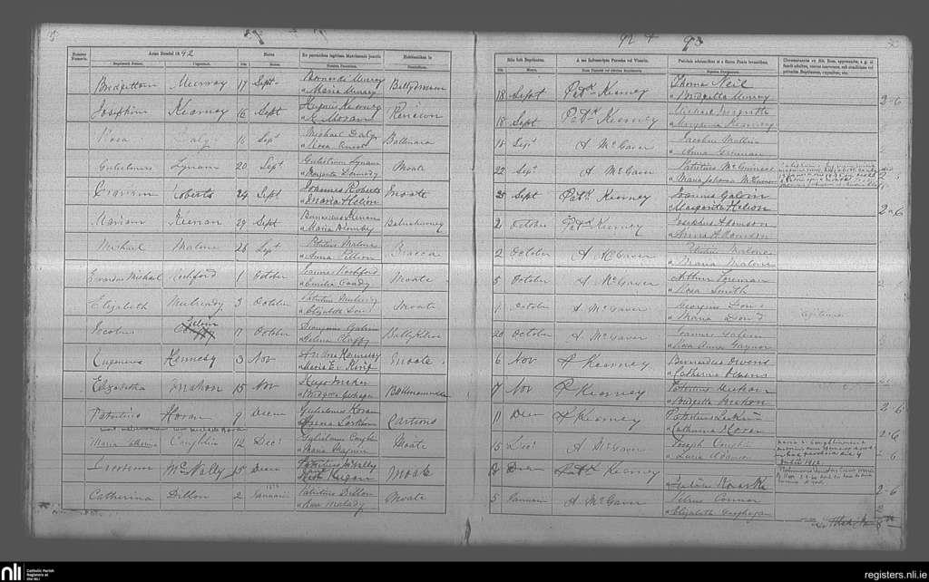 Moate; County of Offaly, Westmeath; Diocese of Ardagh. Baptisms, Sep. 1892 to Jan. 1893