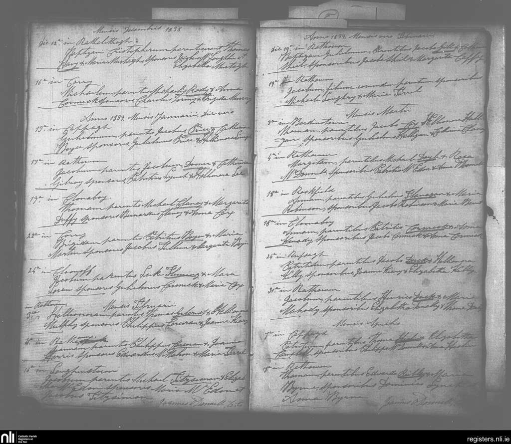Rathaspick and Russagh; County of Westmeath; Diocese of Ardagh. Baptisms, Dec. 1838 to Apr. 1839