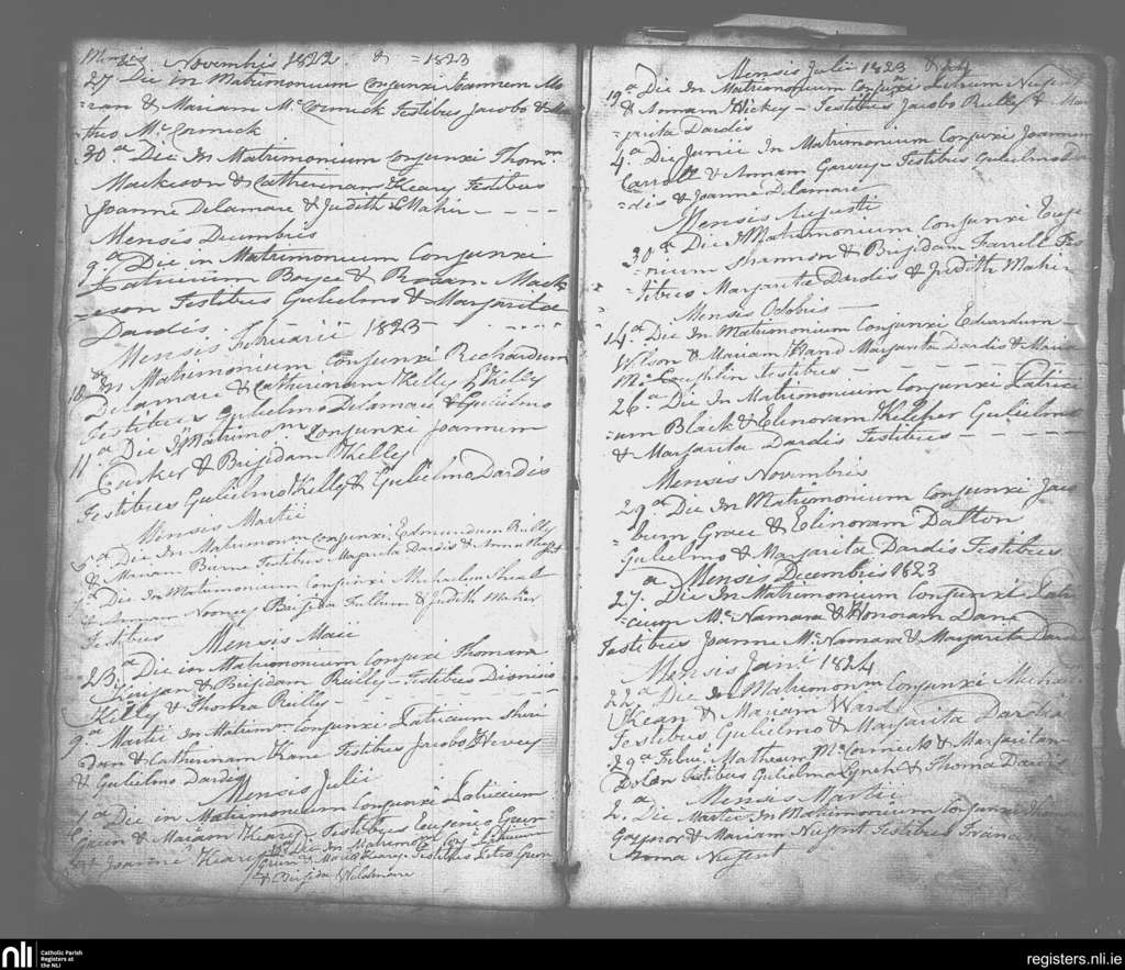 Rathaspick and Russagh; County of Westmeath; Diocese of Ardagh. Marriages, Nov. 1822 to Mar. 1824