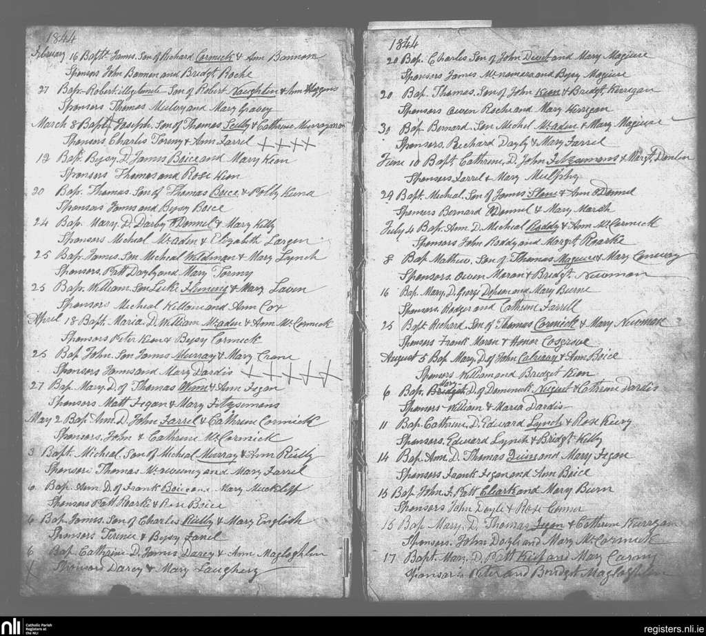 Rathaspick and Russagh; County of Westmeath; Diocese of Ardagh. Baptisms, Feb. 1844 to Aug. 1844