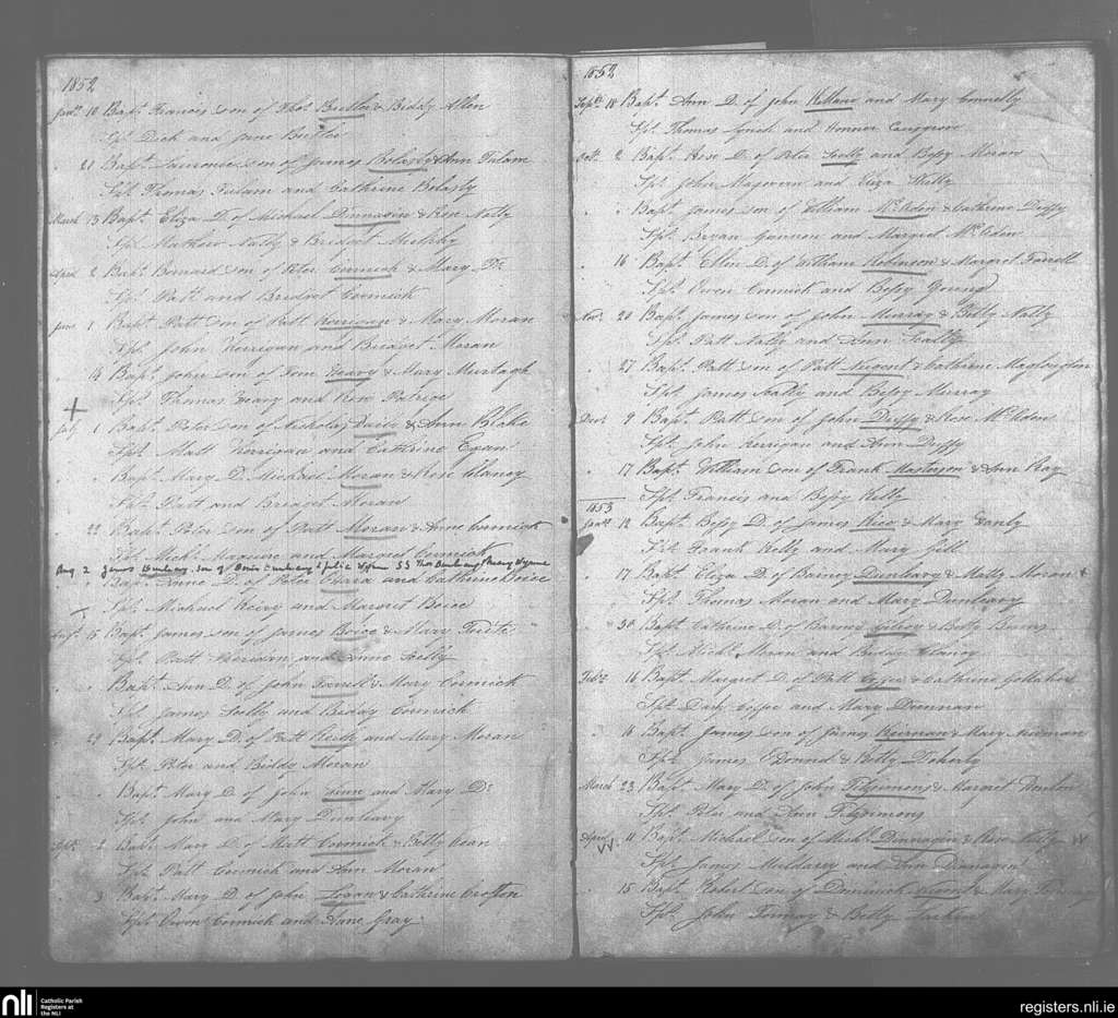 Rathaspick and Russagh; County of Westmeath; Diocese of Ardagh. Baptisms, Jan. 1852 to Apr. 1853
