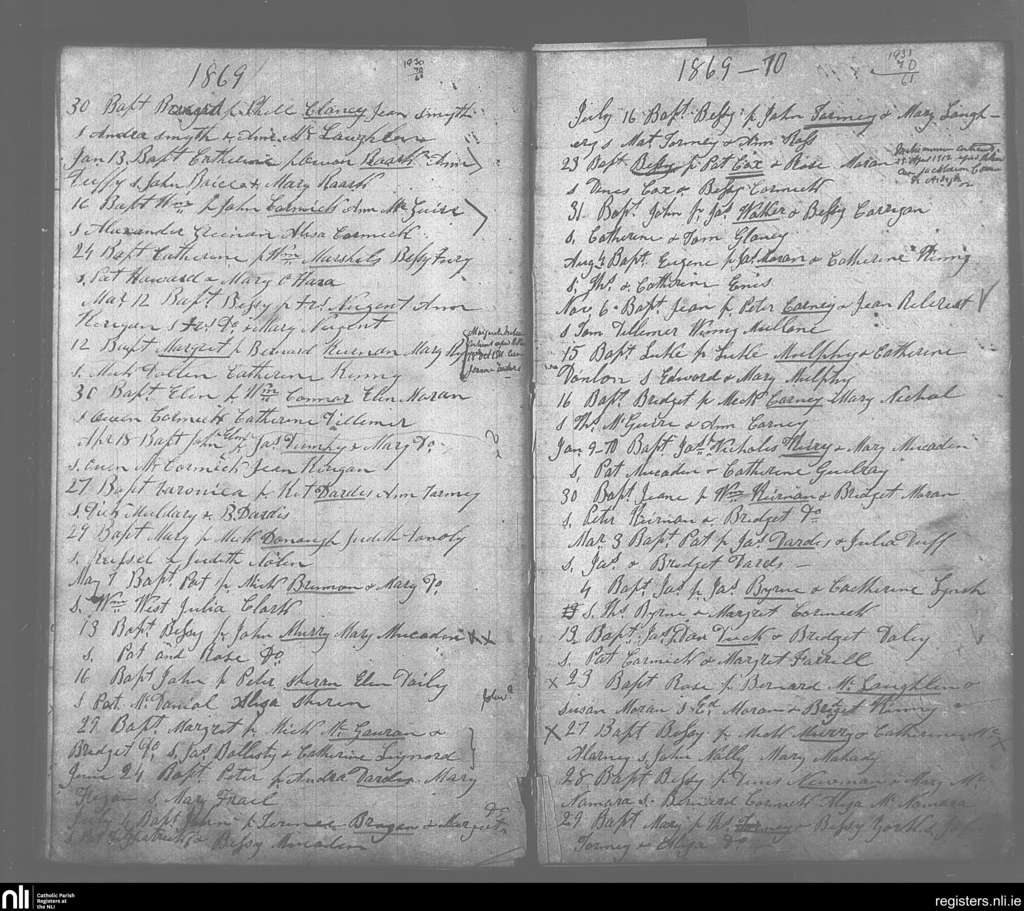 Rathaspick and Russagh; County of Westmeath; Diocese of Ardagh. Baptisms, Jan. 1869 to Mar. 1870