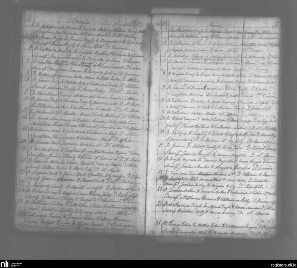 St. Mary's, Athlone; County of Westmeath; Diocese of Ardagh. Baptisms, Deaths, Apr. 1813 to May 1813