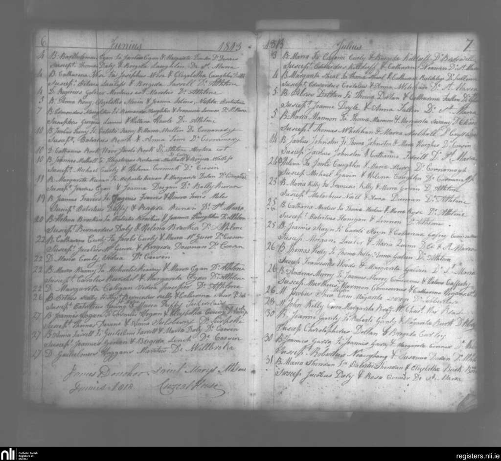 St. Mary's, Athlone; County of Westmeath; Diocese of Ardagh. Baptisms, Marriages, Deaths, June 1813 to July 1813
