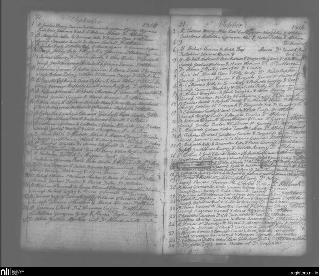 St. Mary's, Athlone; County of Westmeath; Diocese of Ardagh. Baptisms, Marriages, Deaths, Sep. 1814 to Oct. 1814