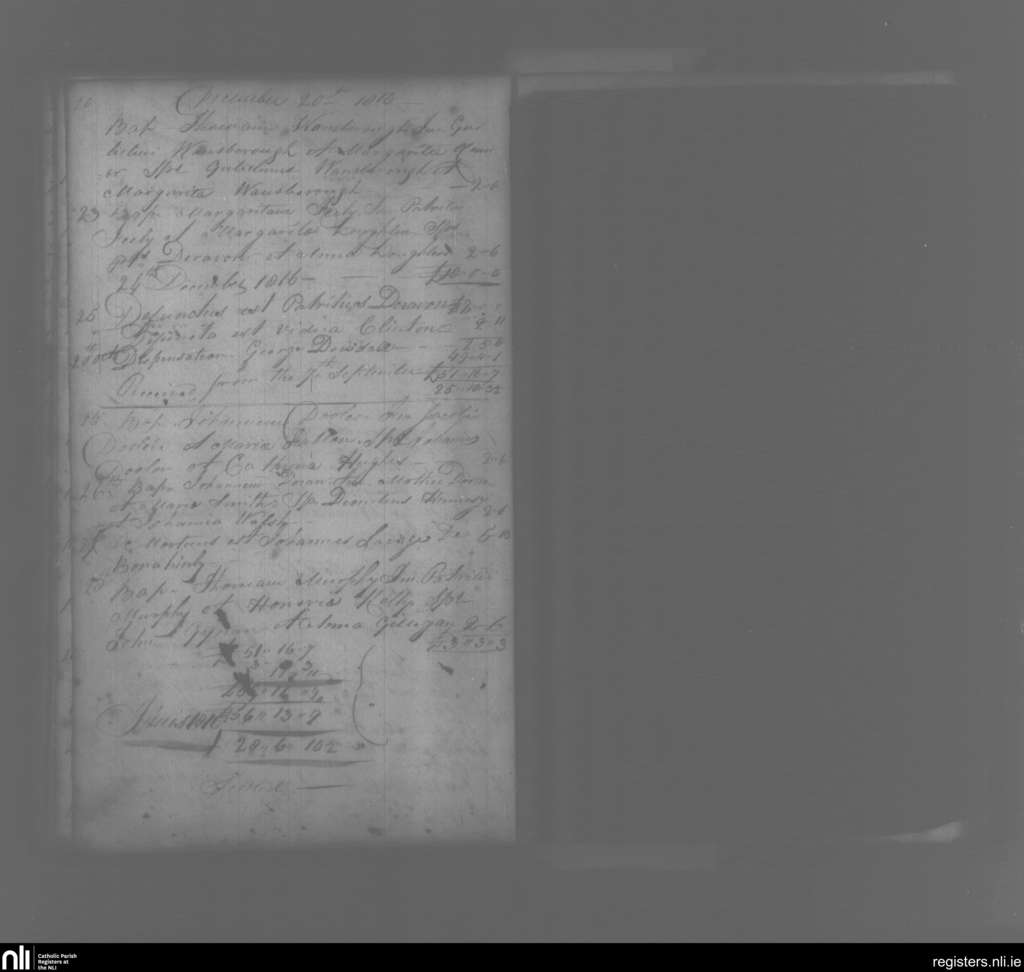 St. Mary's, Athlone; County of Westmeath; Diocese of Ardagh. Baptisms, Deaths, Dec. 1816 to Dec. 1816