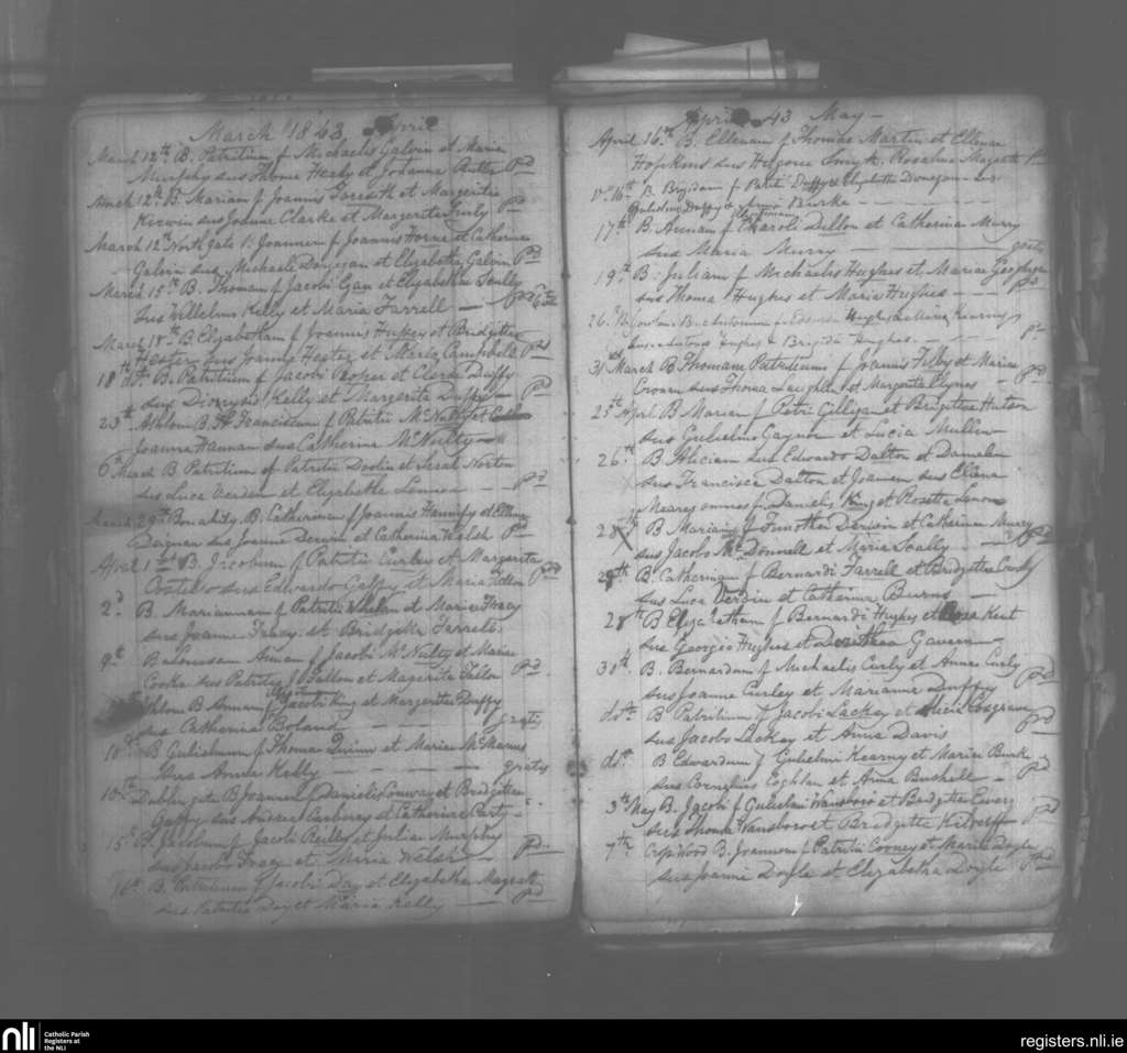 St. Mary's, Athlone; County of Westmeath; Diocese of Ardagh. Baptisms, Mar. 1843 to May 1843