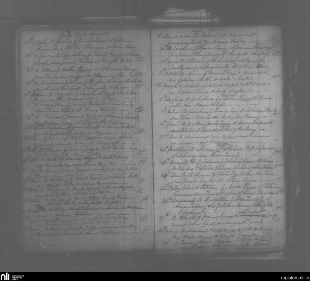 St. Mary's, Athlone; County of Westmeath; Diocese of Ardagh. Baptisms, July 1843 to Aug. 1843