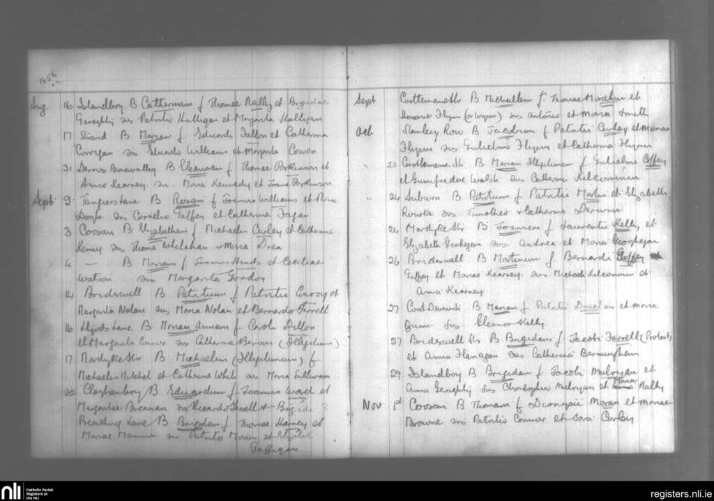 St. Mary's, Athlone; County of Westmeath; Diocese of Ardagh. Baptisms, Aug. 1856 to Nov. 1856