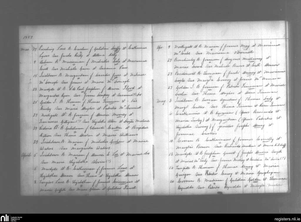 St. Mary's, Athlone; County of Westmeath; Diocese of Ardagh. Baptisms, Mar. 1857 to May 1857