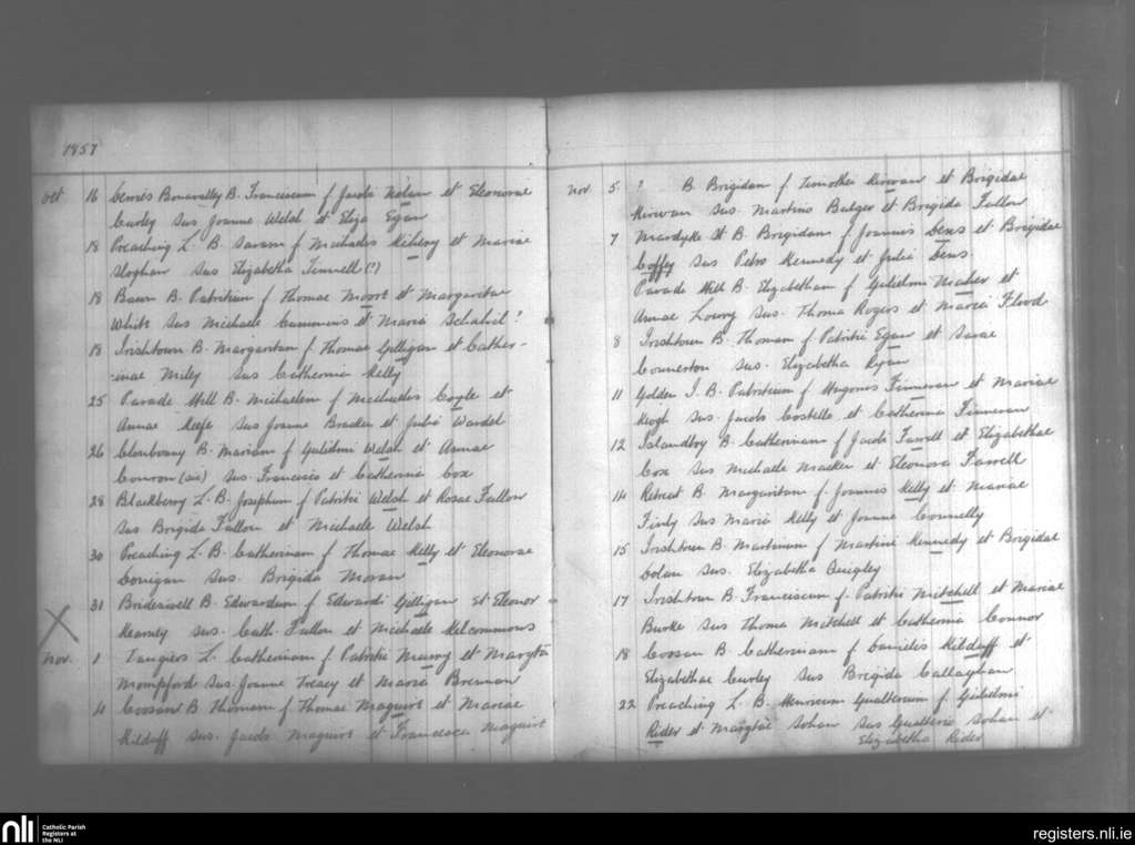 St. Mary's, Athlone; County of Westmeath; Diocese of Ardagh. Baptisms, Oct. 1857 to Nov. 1857