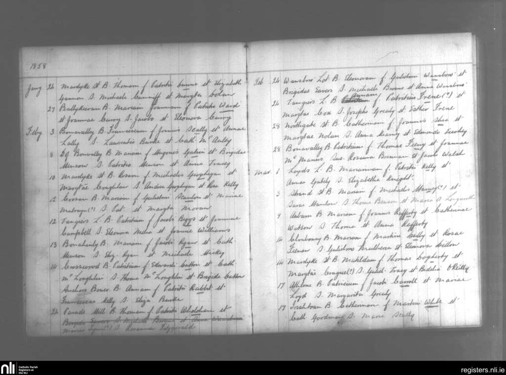 St. Mary's, Athlone; County of Westmeath; Diocese of Ardagh. Baptisms, Jan. 1858 to Mar. 1858