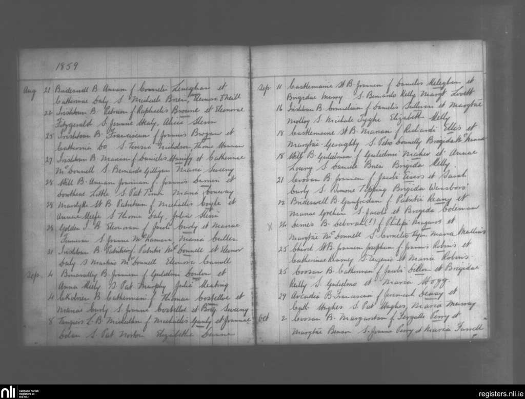 St. Mary's, Athlone; County of Westmeath; Diocese of Ardagh. Baptisms, Aug. 1859 to Oct. 1859