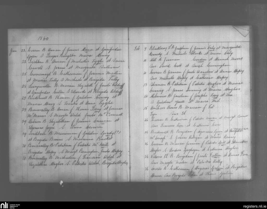 St. Mary's, Athlone; County of Westmeath; Diocese of Ardagh. Baptisms, Jan. 1860 to Feb. 1860