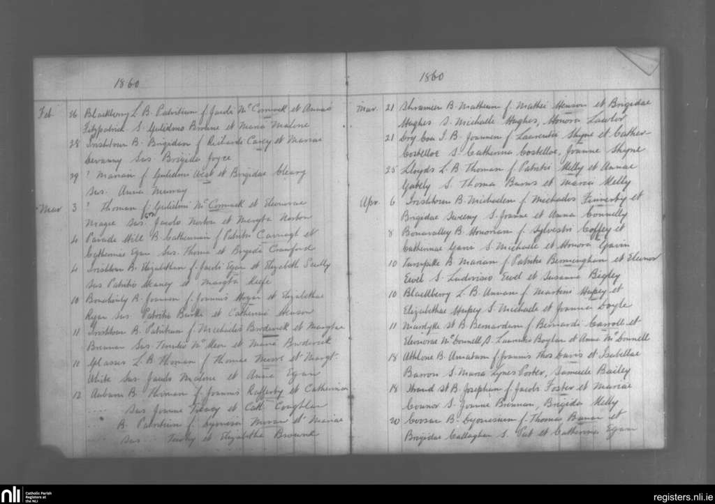 St. Mary's, Athlone; County of Westmeath; Diocese of Ardagh. Baptisms, Feb. 1860 to Apr. 1860