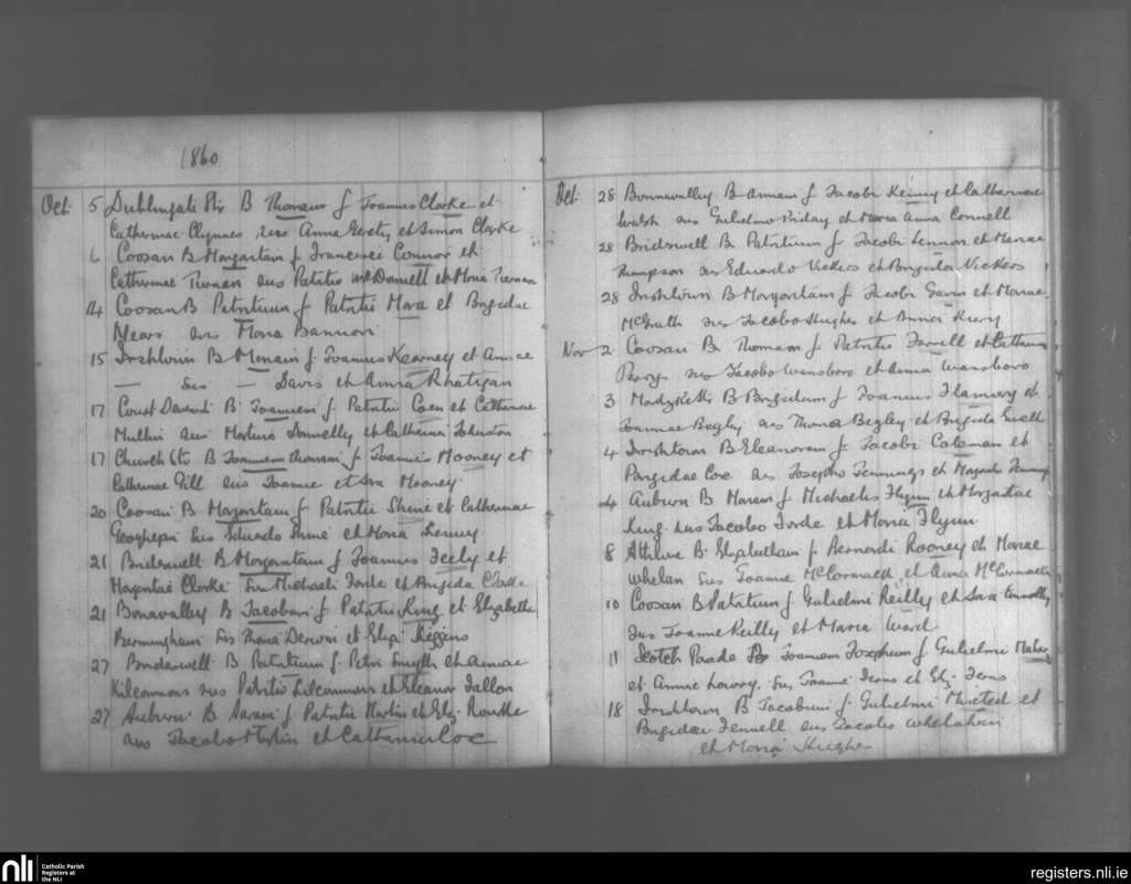 St. Mary's, Athlone; County of Westmeath; Diocese of Ardagh. Baptisms, Oct. 1860 to Nov. 1860