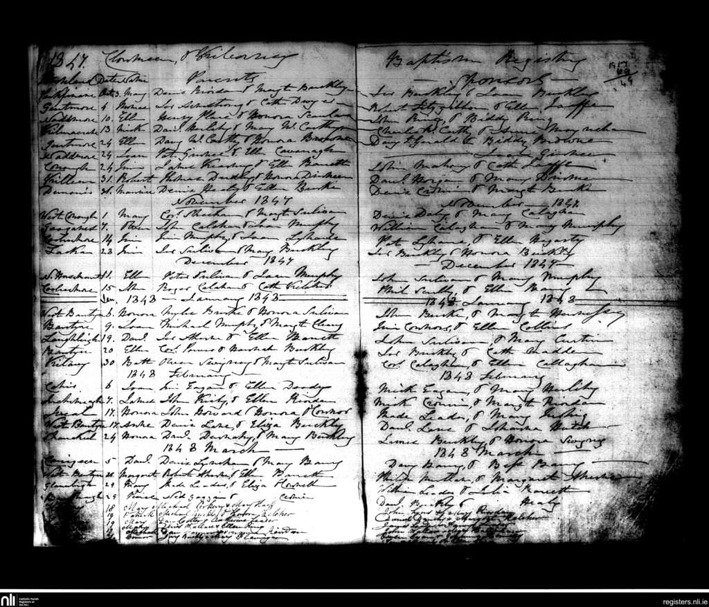 Banteer; County of Cork; Diocese of Cloyne. Baptisms, Oct. 1847 to Mar. 1848