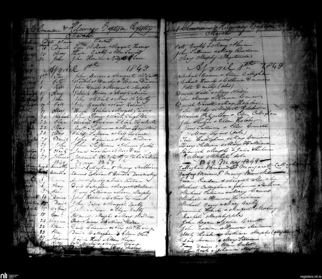 Banteer; County of Cork; Diocese of Cloyne. Baptisms, Mar. 1849 to May 1849