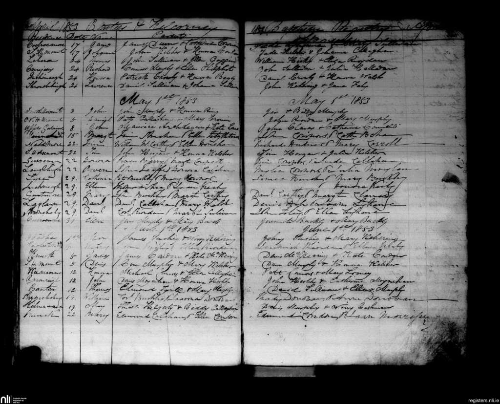 Banteer; County of Cork; Diocese of Cloyne. Baptisms, Apr. 1853 to June 1853