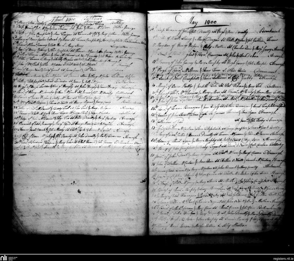 Armagh; County of Armagh; Archdiocese of Armagh. Baptisms, Apr. 1800 to May 1800