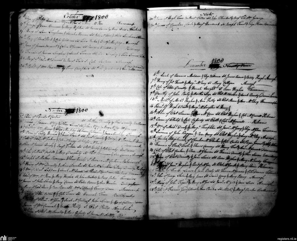 Armagh; County of Armagh; Archdiocese of Armagh. Baptisms, Oct. 1800 to Dec. 1800