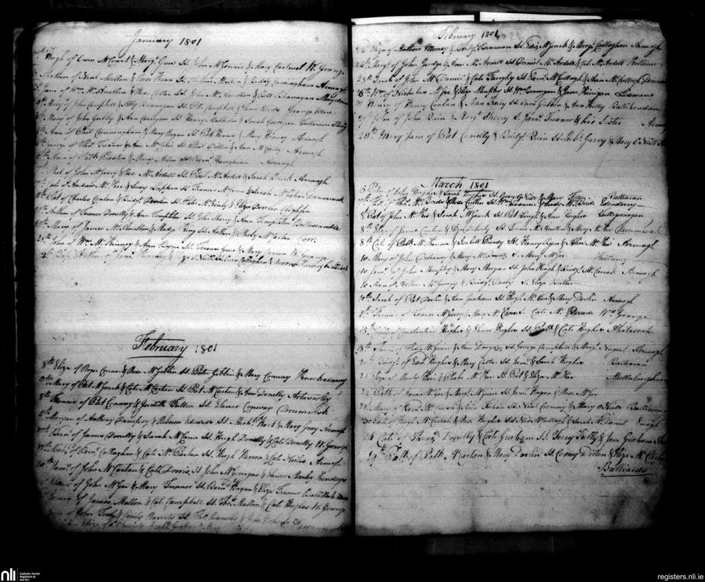 Armagh; County of Armagh; Archdiocese of Armagh. Baptisms, Jan. 1801 to Mar. 1801