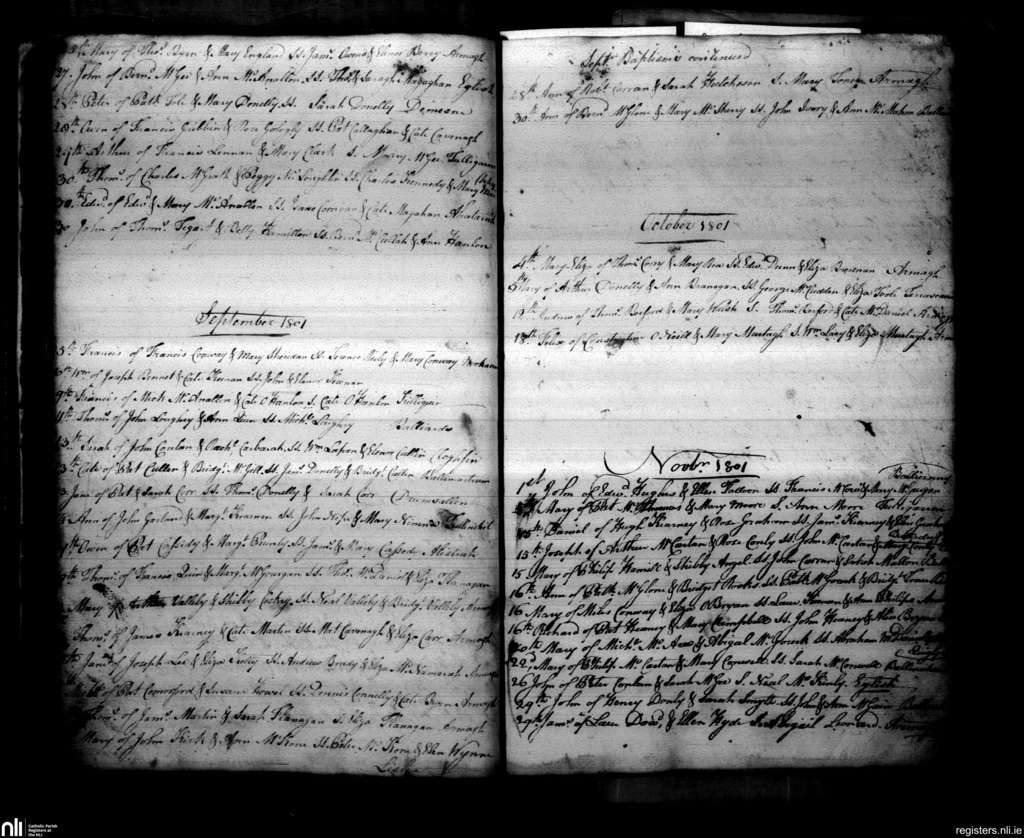 Armagh; County of Armagh; Archdiocese of Armagh. Baptisms, Aug. 1801 to Nov. 1801