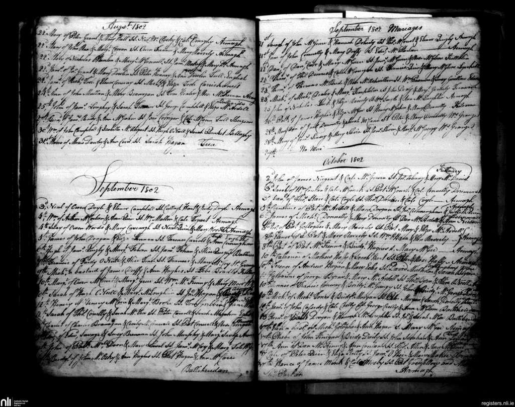 Armagh; County of Armagh; Archdiocese of Armagh. Baptisms, Aug. 1802 to Oct. 1802